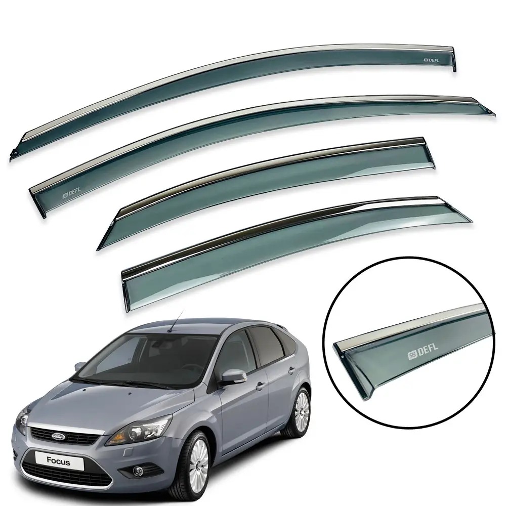 Дефлекторы окон DEFL – это отличный выбор для вашего автомобиля, если вы ищете качественный и стильный аксессуар. Изготовленные из высококачественного акрила они обеспечивают надежную защиту от ветра, дождя и снега, улучшая комфорт во время езды. Особенностью этих дефлекторов является хромированная полоска из нержавеющей стали, которая придает элегантности и современному виду вашему автомобилю.