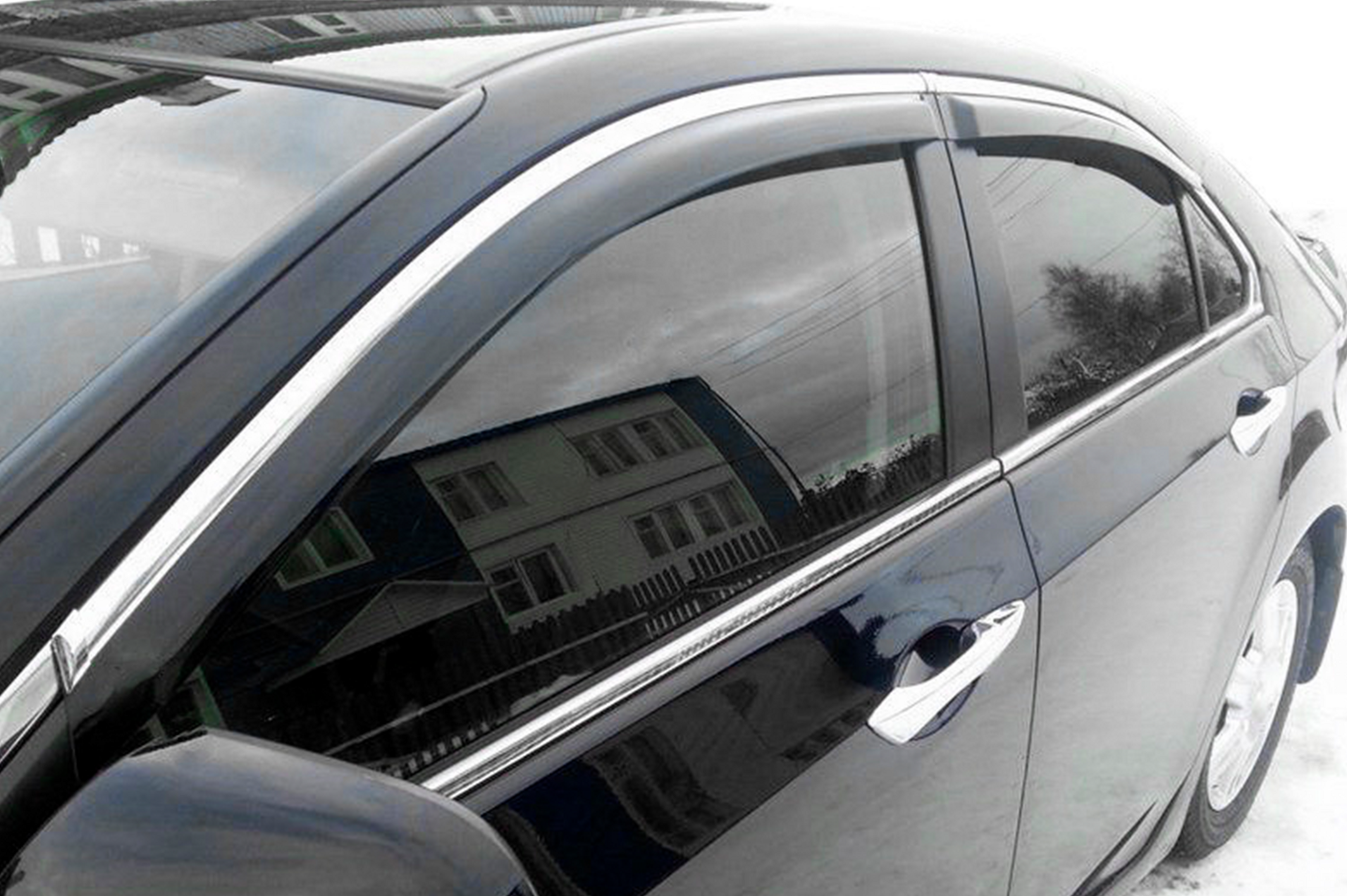 Ветровики изготовлены из акрила с хромированным молдингом из пластика