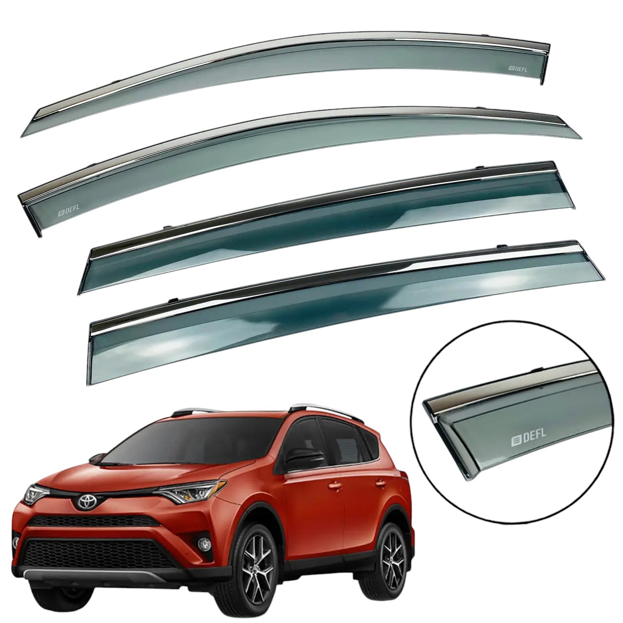 Дефлекторы окон DEFL – это отличный выбор для вашего автомобиля, если вы ищете качественный и стильный аксессуар. Изготовленные из высококачественного акрила они обеспечивают надежную защиту от ветра, дождя и снега, улучшая комфорт во время езды. Особенностью этих дефлекторов является хромированная полоска из нержавеющей стали, которая придает элегантности и современному виду вашему автомобилю.