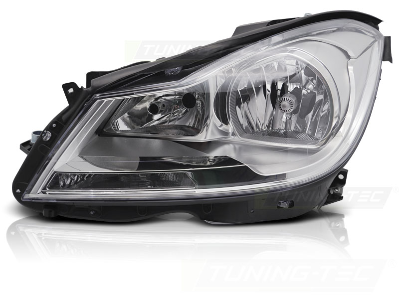 Конструкция и геометрия комплекта передних фар полностью соответствует модели Mercedes C-class W204, что гарантирует полную совместимость крепления и подключения.