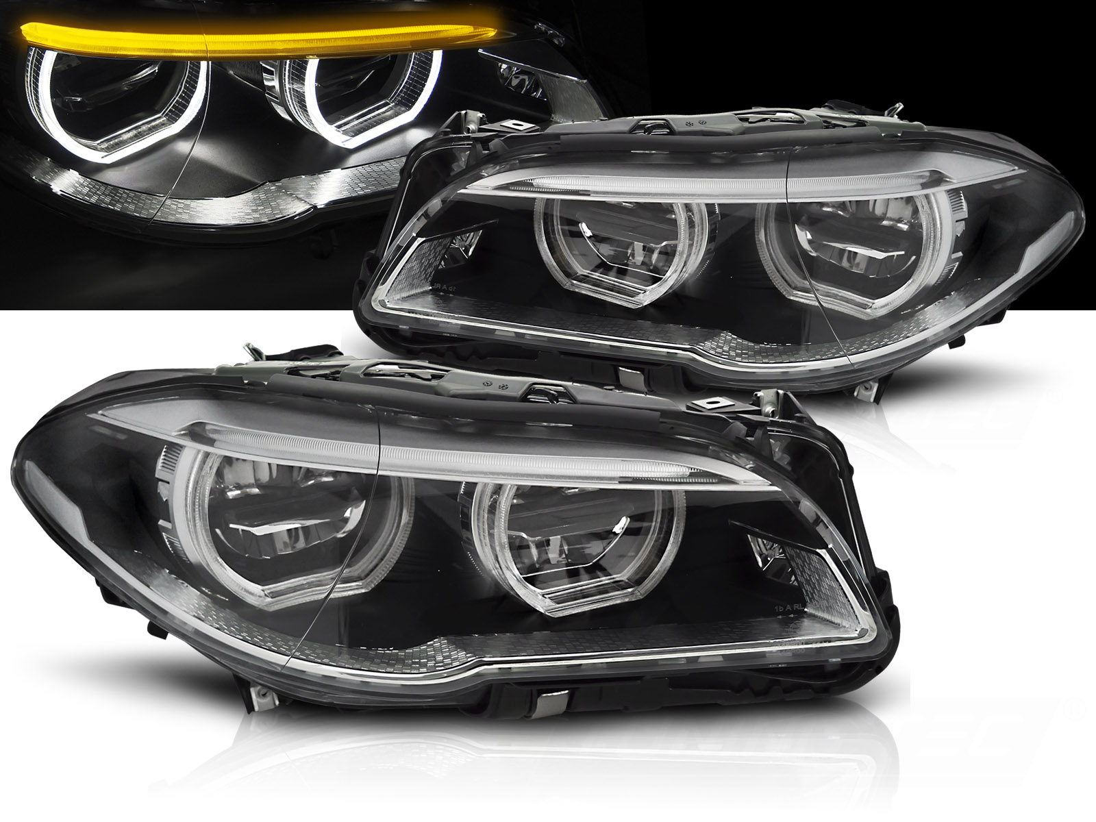 Конструкция и геометрия комплекта передних фар полностью соответствует модели BMW F10, что гарантирует полную совместимость крепления и подключения.