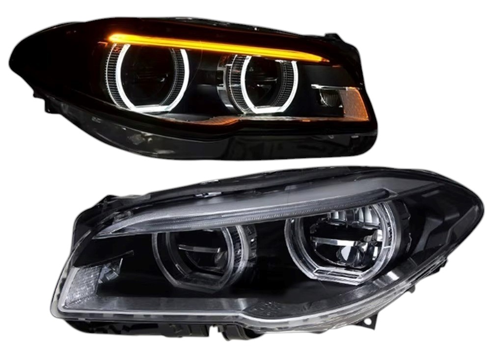 Конструкция и геометрия комплекта передних фар полностью соответствует модели BMW F10, что гарантирует полную совместимость крепления и подключения.