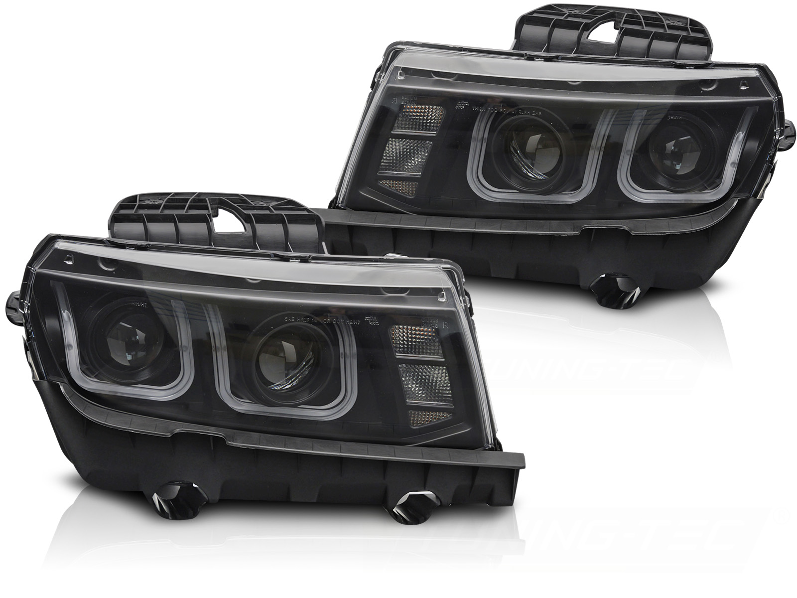 - Конструкция и геометрия комплекта редних фар полностью соответствует модели Chevrolet Camaro, что гарантирует полную совместимость крепления и подключения.
