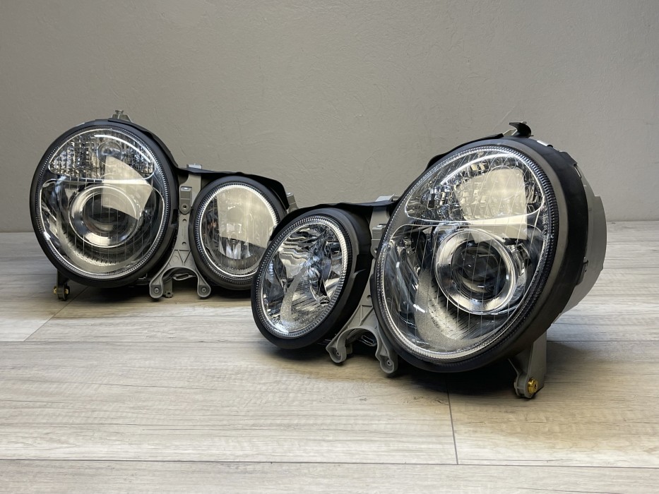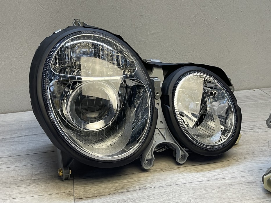 • Конструкция и геометрия комплекта редних фар полностью соответствует модели Mercedes E-class W210, что гарантирует полную совместимость крепления и подключения.