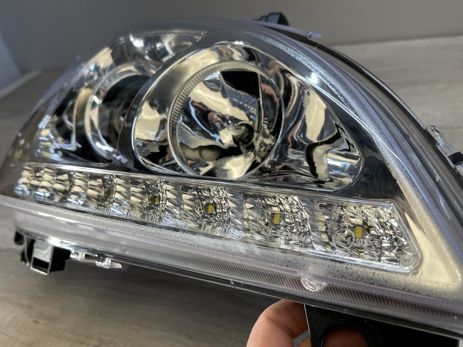 • Конструкция и геометрия комплекта передних фар полностью соответствует модели Mercedes ML-class W163, что гарантирует полную совместимость крепления и подключения.