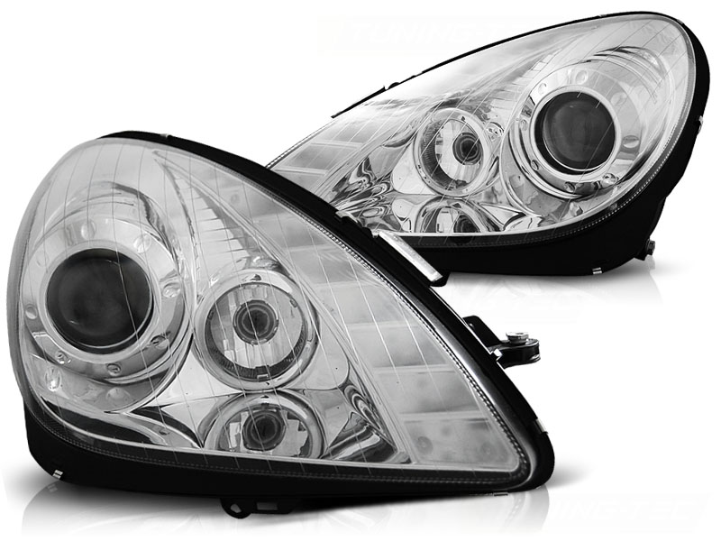 • Конструкция и геометрия комплекта передних фар полностью соответствует модели Mercedes SLK, что гарантирует полную совместимость крепления и подключения.
