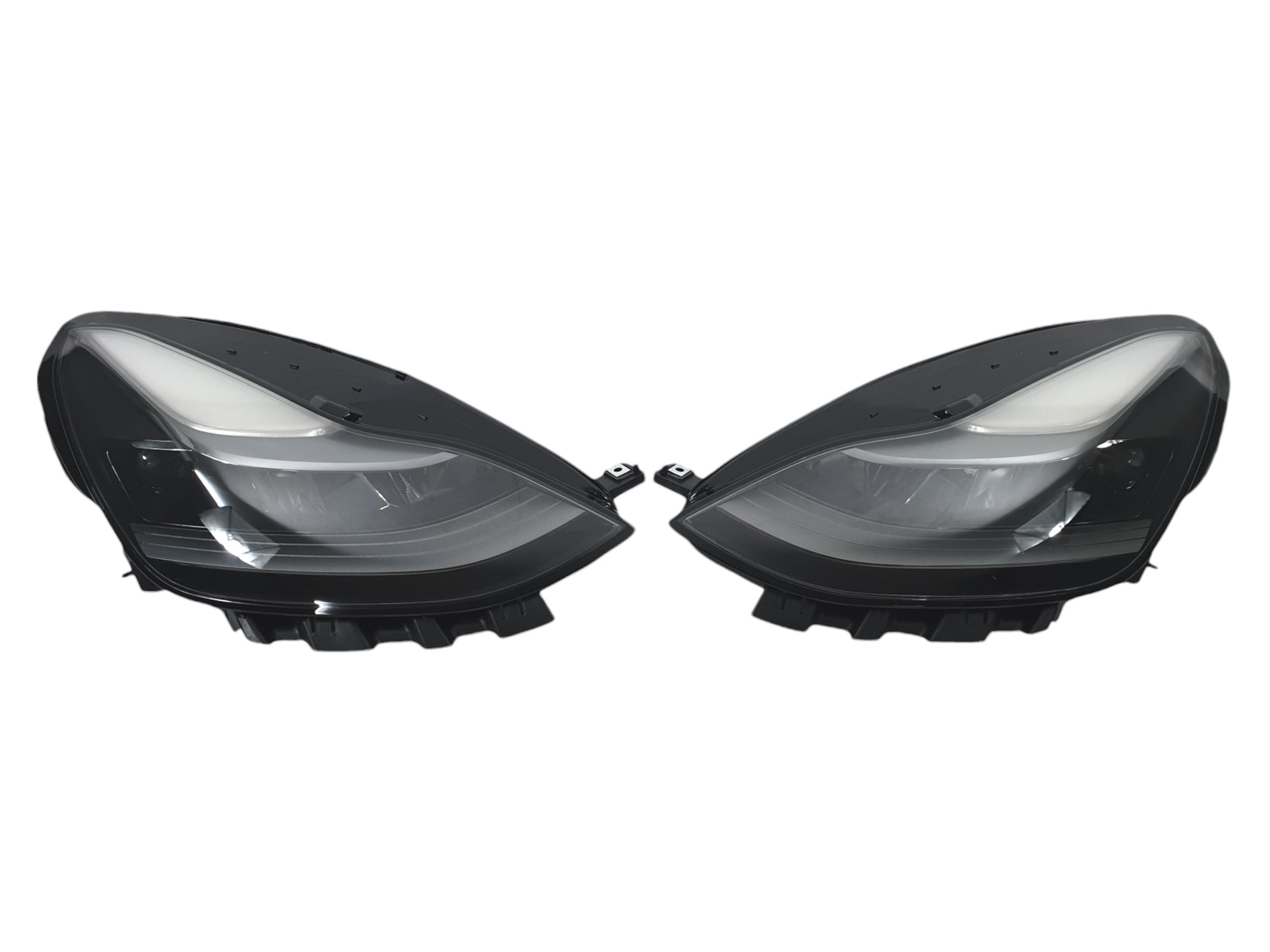 - Конструкция и геометрия комплекта передних фар полностью соответствует модели Tesla Model 3, что гарантирует полную совместимость крепления и подключения.