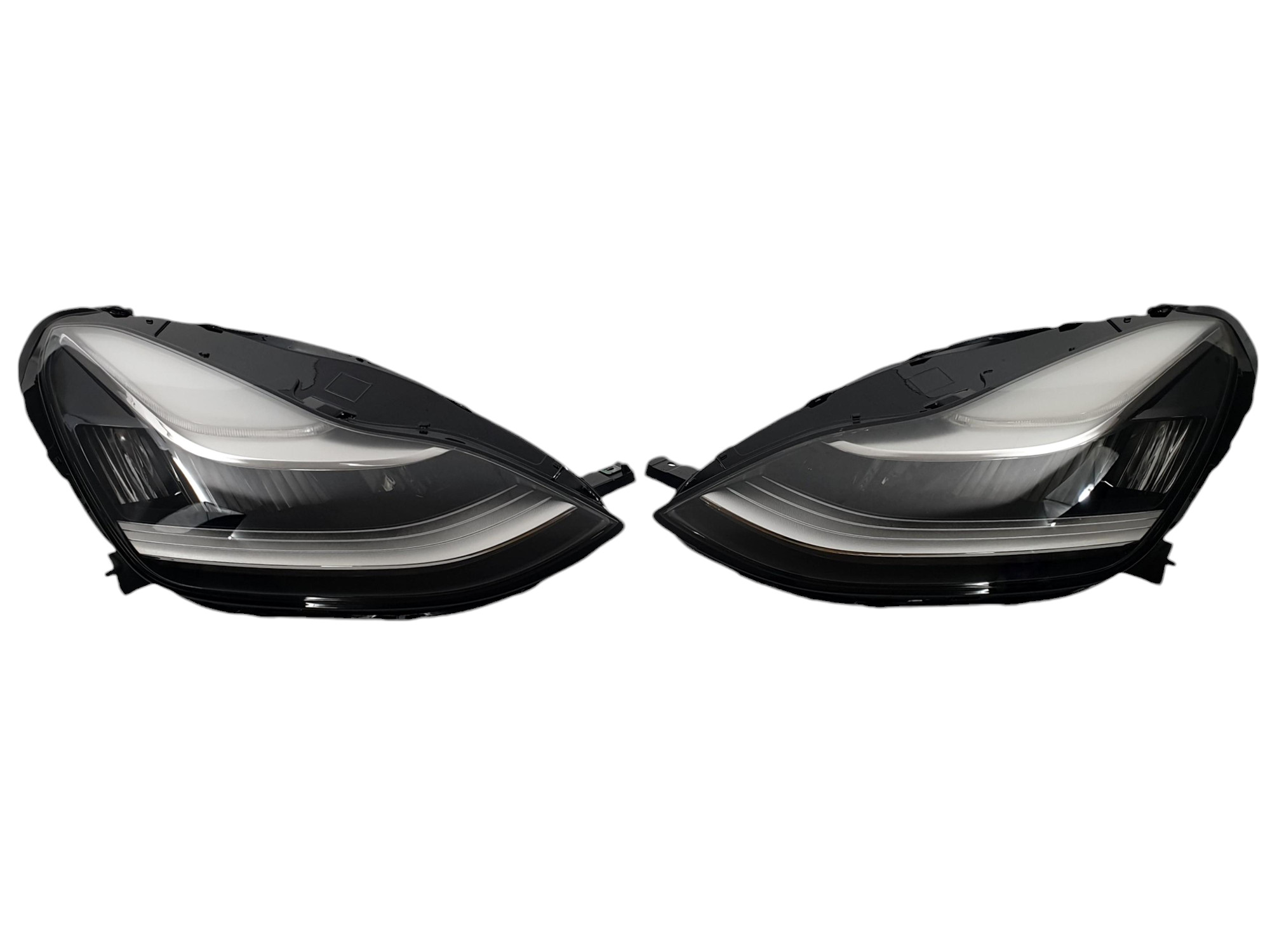 - Конструкция и геометрия комплекта передних фар полностью соответствует модели Tesla Model 3, что гарантирует полную совместимость крепления и подключения.