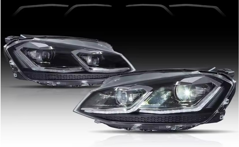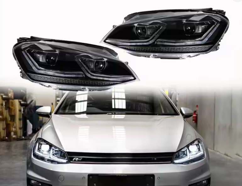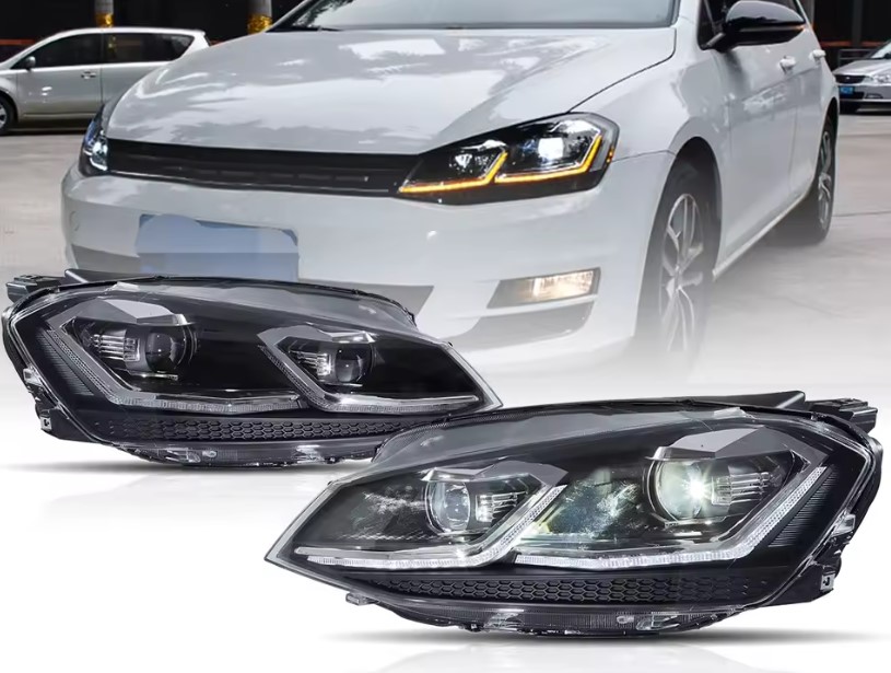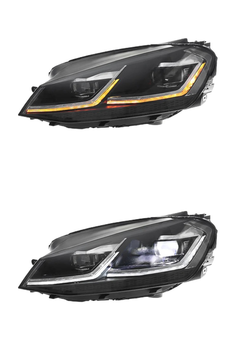 - Конструкция и геометрия комплекта передних фар полностью соответствует модели Volkswagen Golf 7, что гарантирует полную совместимость крепления и подключения
