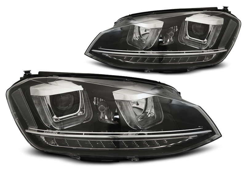 Конструкция и геометрия комплекта передних фар полностью соответствует модели Volkswagen Golf 7, что гарантирует полную совместимость крепления и подключения.