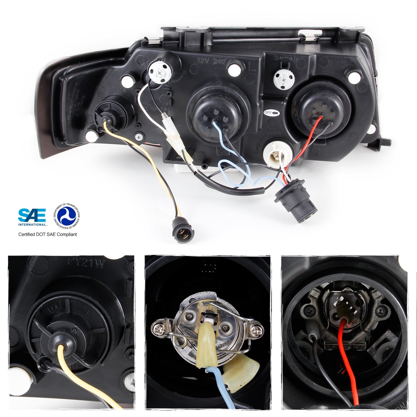 • Конструкция и геометрия комплекта передних фар полностью соответствует модели Volkswagen Passat B5, что гарантирует полную совместимость крепления и подключения.