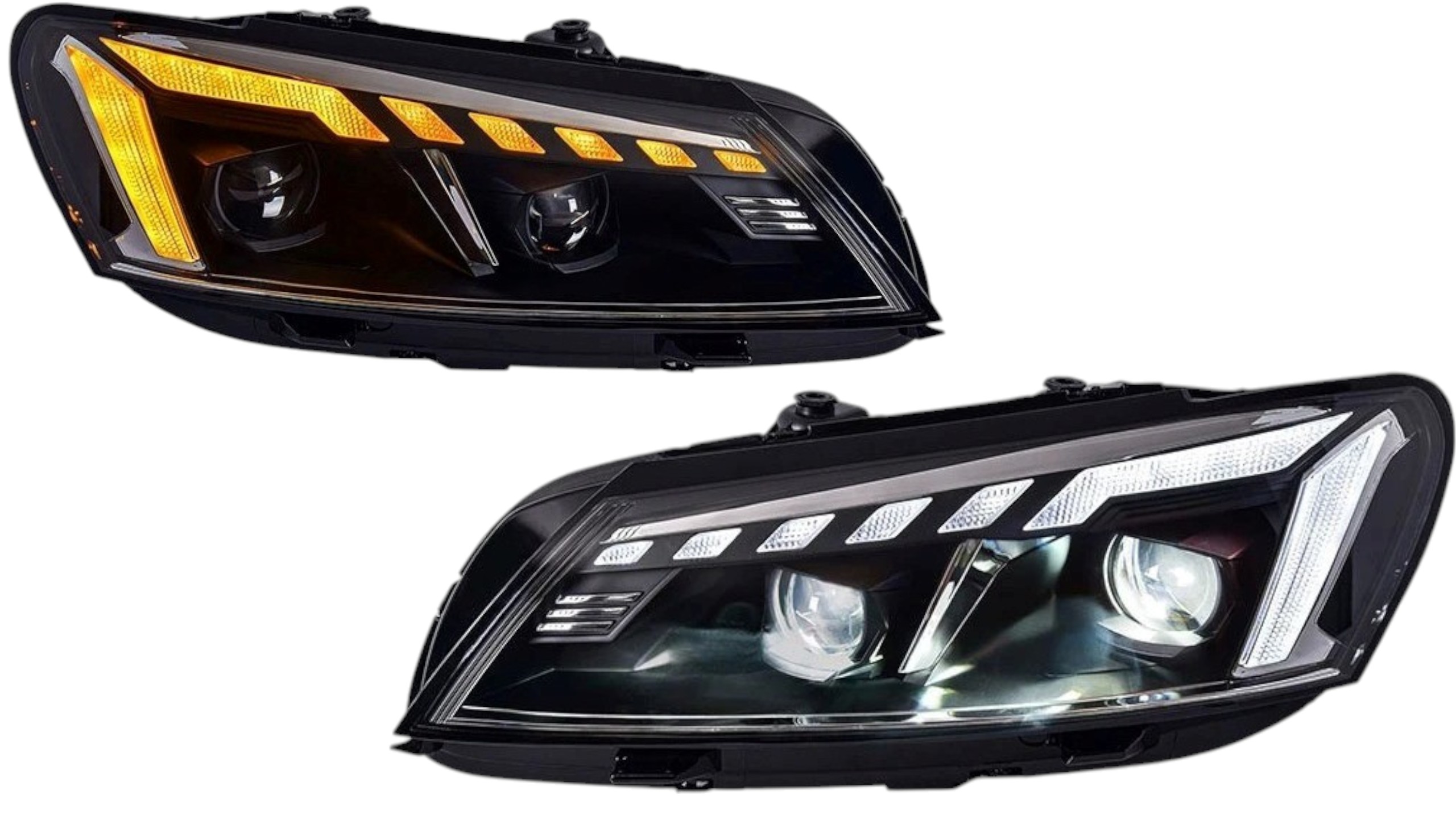 • Конструкция и геометрия комплекта передних фар полностью соответствует модели Volkswagen Passat B7, что гарантирует полную совместимость крепления и подключения.