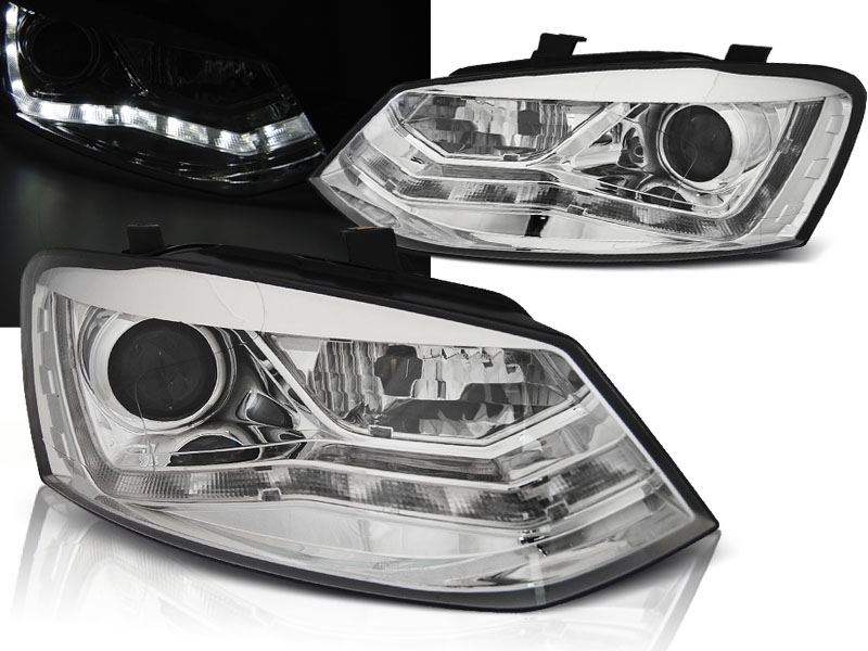 - Конструкция и геометрия комплекта передних фар полностью соответствует модели Volkswagen Polo, что гарантирует полную совместимость крепления и подключения.