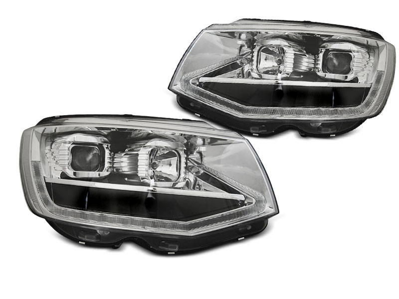 - Конструкция и геометрия комплекта передних фар полностью соответствует модели Volkswagen T6, что гарантирует полную совместимость крепления и подключения.