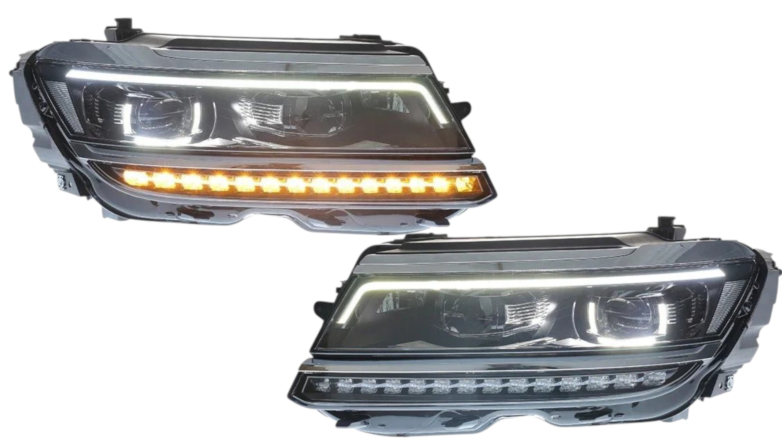 - • Конструкция и геометрия комплекта передних фар полностью соответствует модели Volkswagen Tiguan, что гарантирует полную совместимость крепления и подключения.