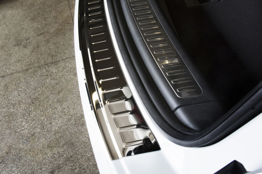 Одним из возможных вариантов тюнинга Вашего автомобиля Porsche Macan есть установка накладки на задний бампер. Накладка на задний бампер специально сконструирована для тех автомобильных владельцев, которые хотят уберечь свой задний бампер от всевозможных повреждений, таких как царапины, потертости, сколы, трещины и прочее. Накладка полностью сделана из нержавеющей стали, что предотвратит любые коррозии, а наличие загиба в ее конструкции позволит уберечь бампер от всех возможных повреждений, которые в основном возникают во время погрузки и выгрузки вещей из багажника. Также эта деталь застрахует Ваше авто от повреждений, которые Вы можете получить вследствие путешествий и исследований Вашим ребенком задней части автомобиля – его багажника. Поскольку Porache Macan может быть отнесен к семейным автомобилям, то Вам непременно стоит установить такую накладку на задний бампер.