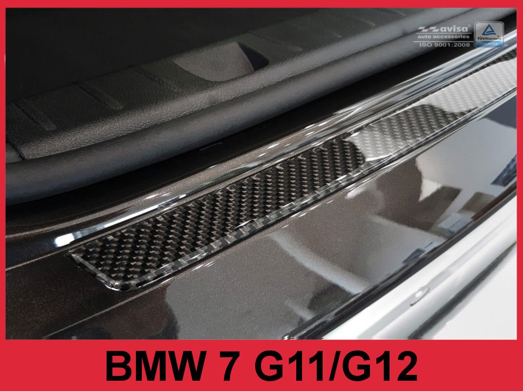 Защитная накладка на задний бампер BMW 7 (G11) сконструирована и произведена с учетом всех характеристик заднего бампера Вашего автомобиля, полностью повторяет его форму в месте крепления и должна легко установиться в отведенном ей участке бампера.