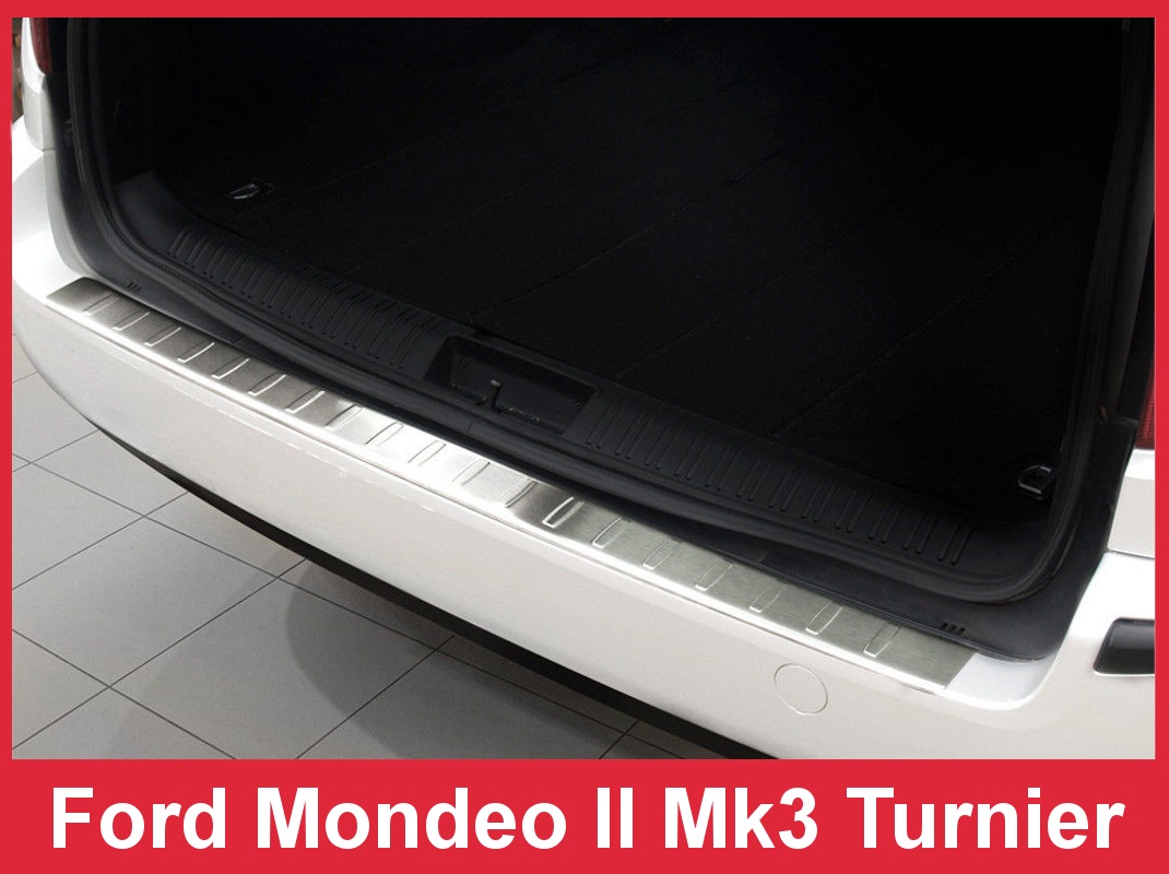 Одним из возможных вариантов тюнинга Вашего автомобиля Ford Mondeo MK3 Kombi есть установка накладки на задний бампер. Накладка на задний бампер специально сконструирована для тех автомобильных владельцев, которые хотят уберечь свой задний бампер от всевозможных повреждений, таких как царапины, потертости, сколы, трещины и прочее. Накладка полностью сделана из нержавеющей стали, что предотвратит любые коррозии, а наличие загиба в ее конструкции позволит уберечь бампер от всех возможных повреждений, которые в основном возникают во время погрузки и выгрузки вещей из багажника. Также эта деталь застрахует Ваше авто от повреждений, которые Вы можете получить вследствие путешествий и исследований Вашим ребенком задней части автомобиля – его багажника. Поскольку Ford Mondeo может быть отнесен к семейным автомобилям, то Вам непременно стоит установить такую накладку на задний бампер.