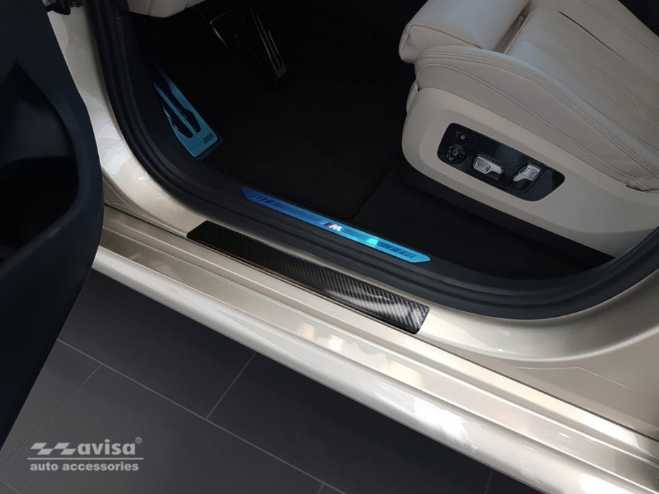 Накладки на пороги BMW X5 G05, выполненные из нержавеющей стали, предотвращают появление царапин лакокрасочного покрытия, которые могут возникнуть в результате касаний подошвы обуви к поверхности порогов. В противном случае, в зоне покрытия порогов начинают образовываться потертости, сколы лака и микроцарапины.