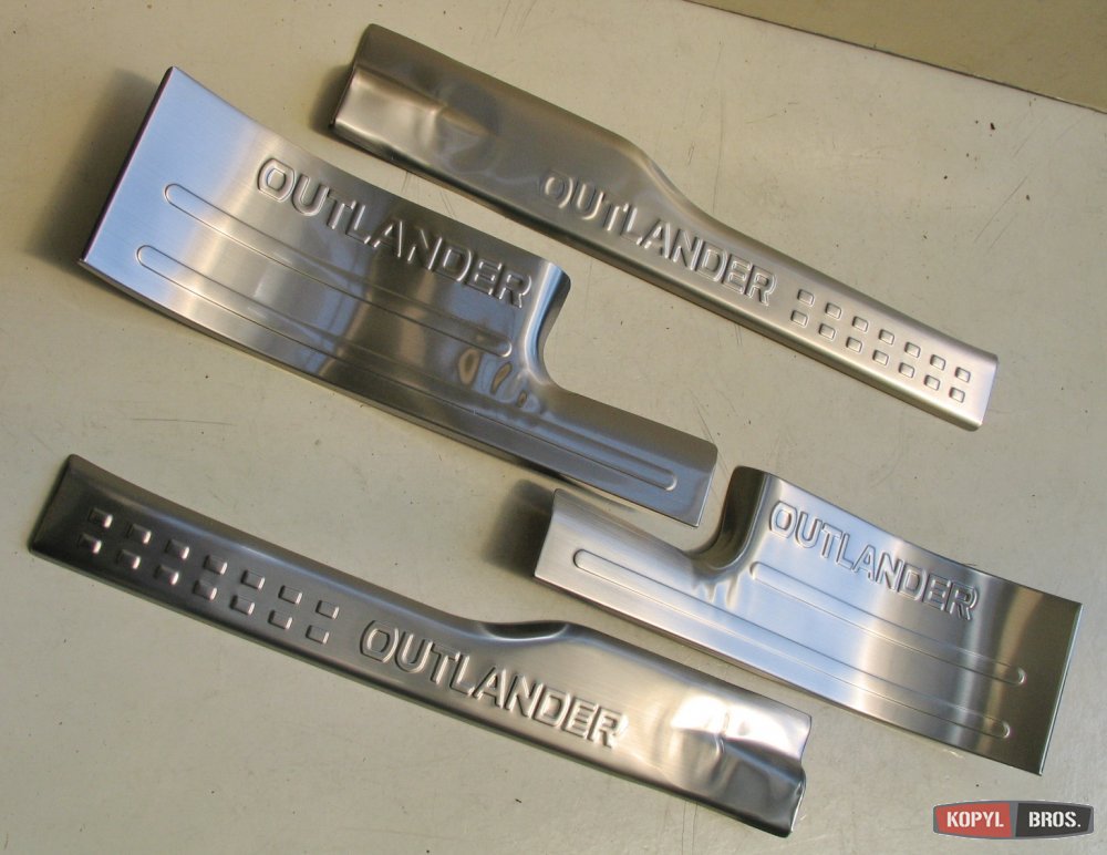 Комплект накладок на пороги Mitsubishi Outlander из высококачественной нержавеющей стали выделит Ваш автомобиль из общей массы таких же и надежно защитит лакокрасочное покрытие порогов от механических повреждений, возникающих при посадке и высадке пассажиров.