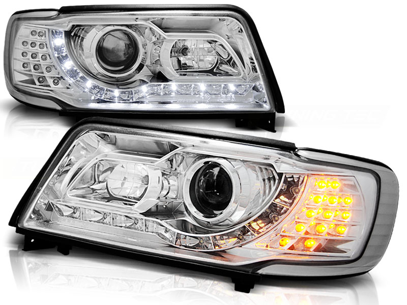 • Конструкция и геометрия комплекта передних фар полностью соответствует модели Audi 100 C4, что гарантирует полную совместимость крепления и подключения.