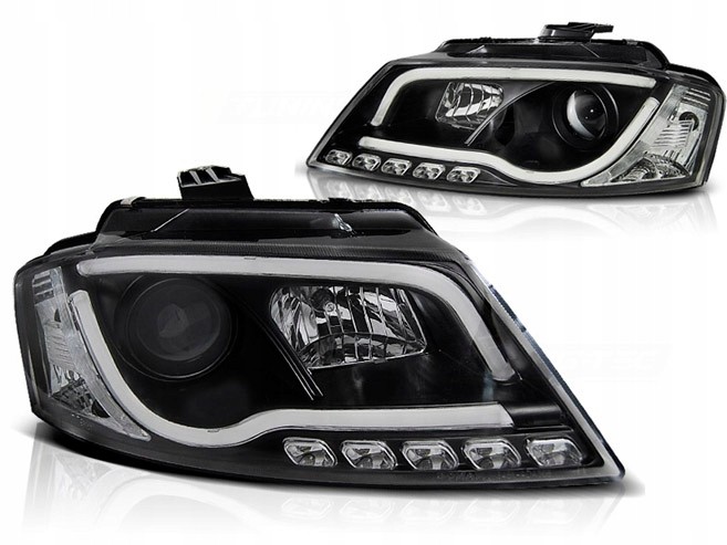 • Конструкция и геометрия комплекта передних фар полностью соответствует модели AUDI A3 8P, что гарантирует полную совместимость крепления и подключения.