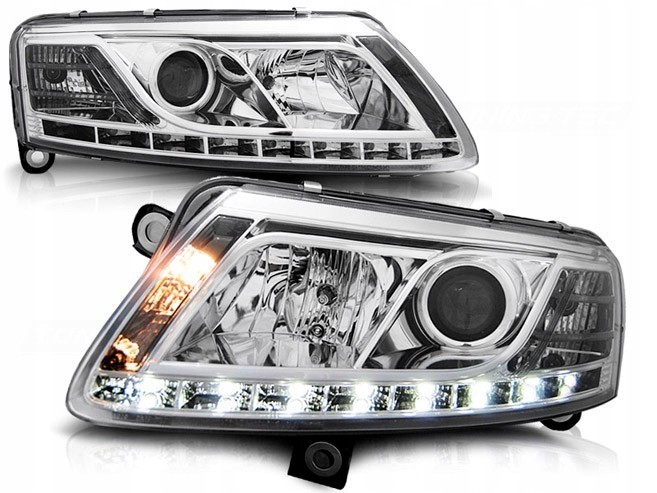 • Конструкция и геометрия комплекта передних фар полностью соответствует модели AUDI A6 C6, что гарантирует полную совместимость крепления и подключения.