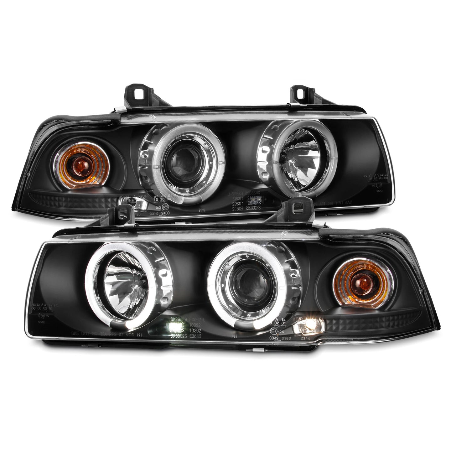 - Конструкция и геометрия комплекта редних фар полностью соответствует модели BMW E36, что гарантирует полную совместимость крепления и подключения.