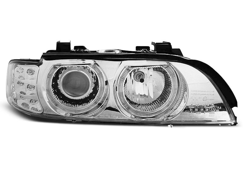 • Конструкция и геометрия комплекта передних фар полностью соответствует модели BMW E39, что гарантирует полную совместимость крепления и подключения.