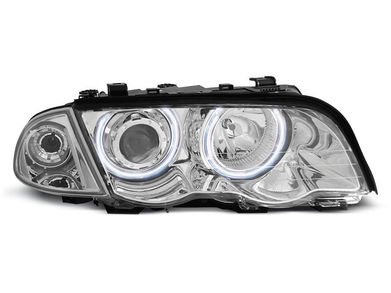 • Конструкция и геометрия комплекта передних фар полностью соответствует модели BMW E46, что гарантирует полную совместимость крепления и подключения.