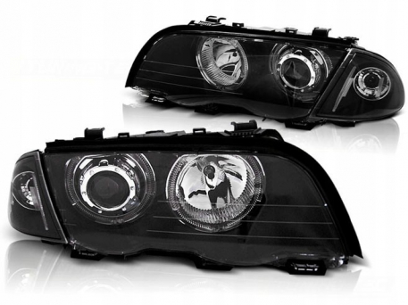 - Конструкция и геометрия комплекта передних фар полностью соответствует модели BMW E46, что гарантирует полную совместимость крепления и подключения.