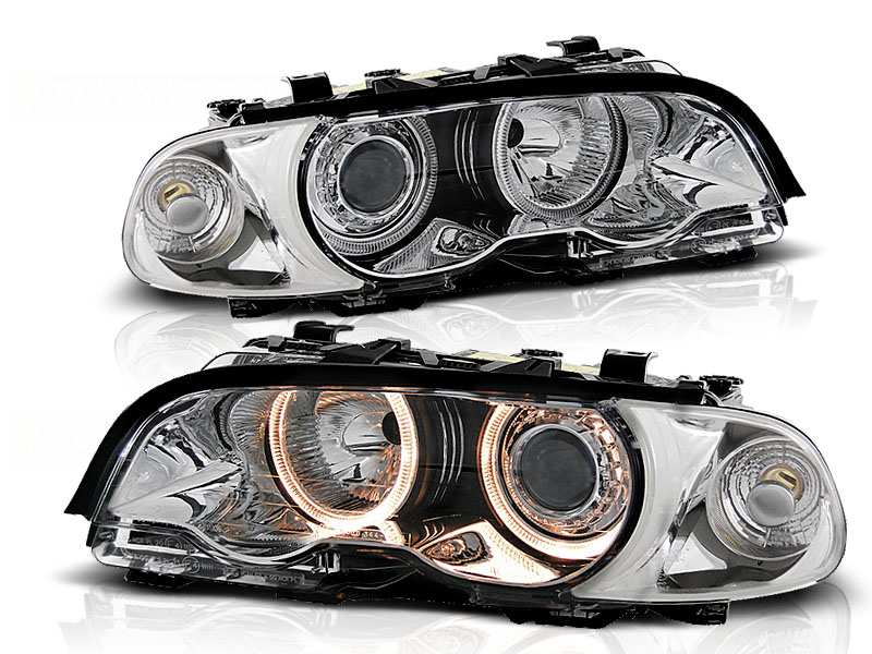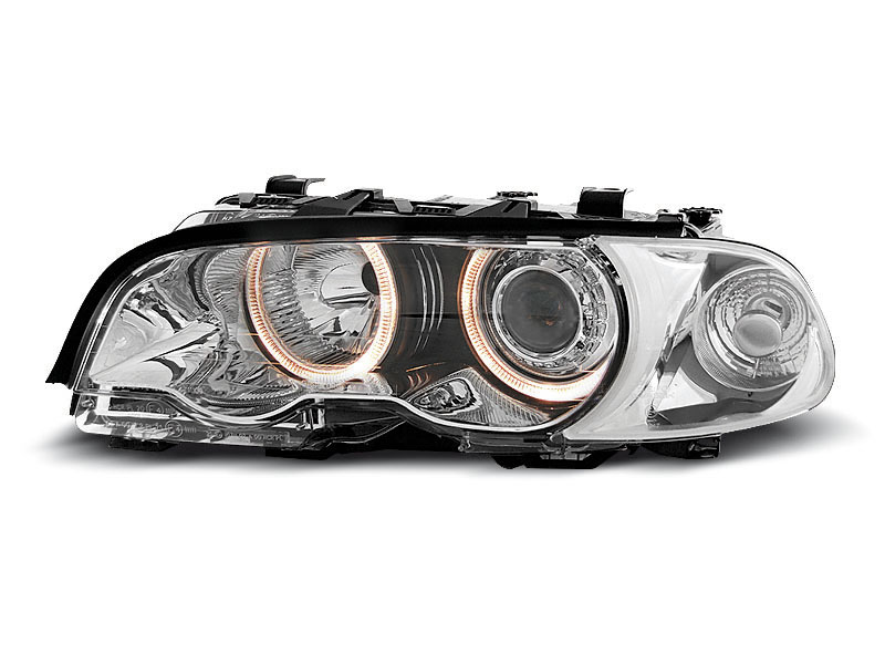 • Конструкция и геометрия комплекта передних фар полностью соответствует модели BMW E46, что гарантирует полную совместимость крепления и подключения.