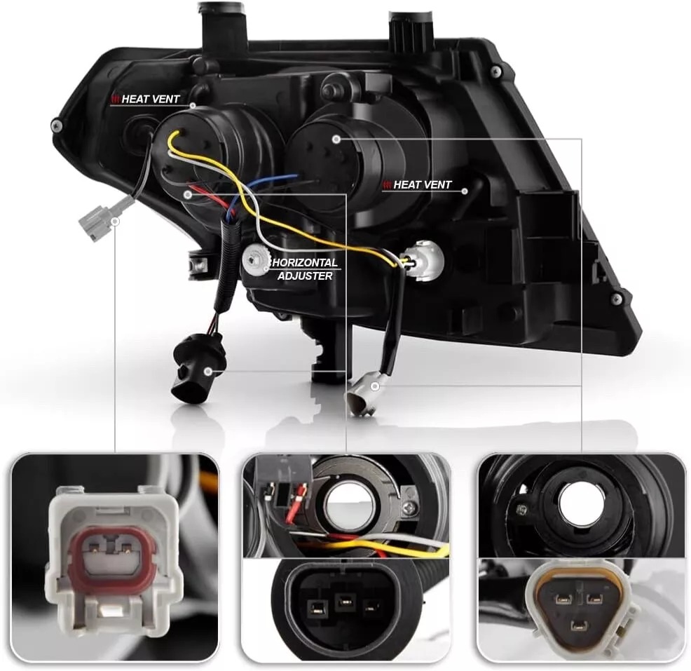 • Конструкция и геометрия комплекта передних фар полностью соответствует модели Nissan Navara, что гарантирует полную совместимость крепления и подключения.