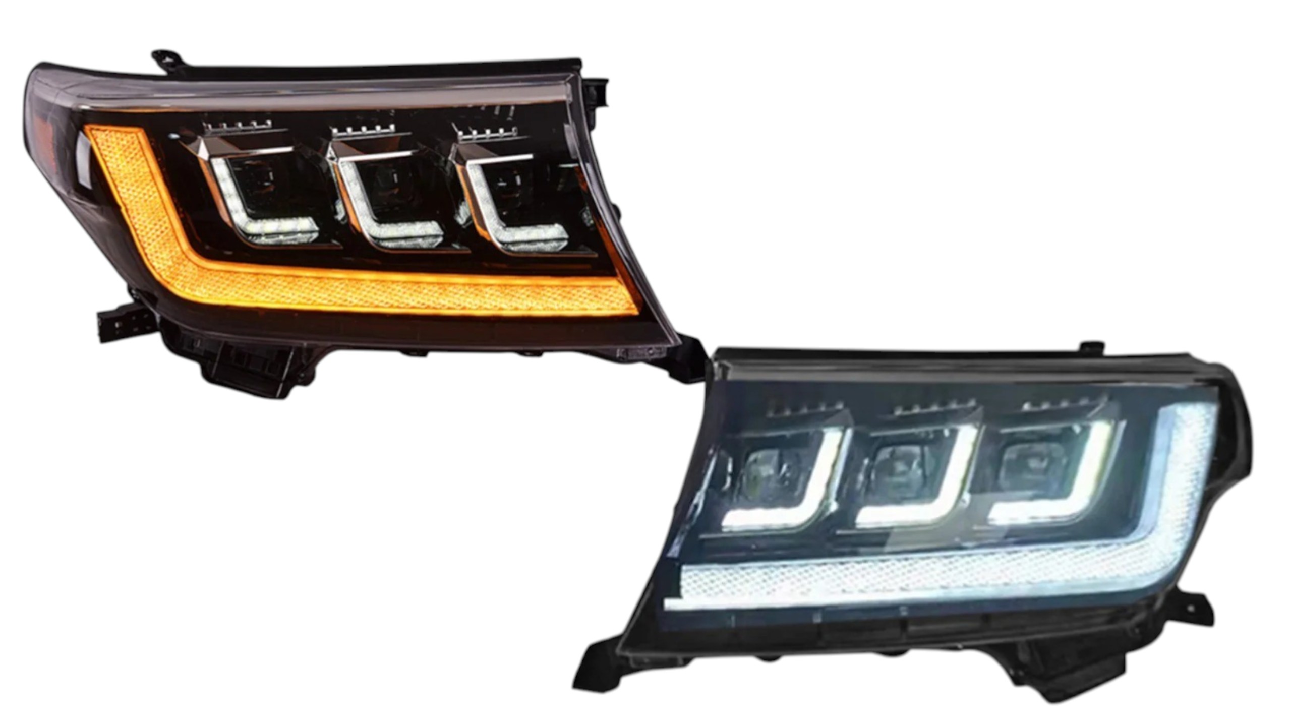 • Конструкция и геометрия комплекта передних фар полностью соответствует модели Toyota Land Cruiser 200, что гарантирует полную совместимость крепления и подключения.