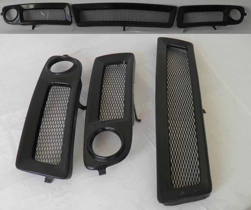 В комплект входит 2 решетки вокруг противотуманных фар и 1 центральная решетка