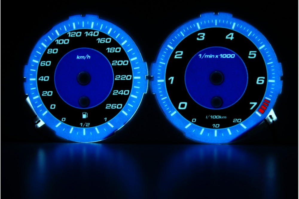 При установке шкал INDIGLO не требуеться демонтаж старых шкал, или установка дополнительных подсветок, что очень часто заканчивается повреждением приборной панели.