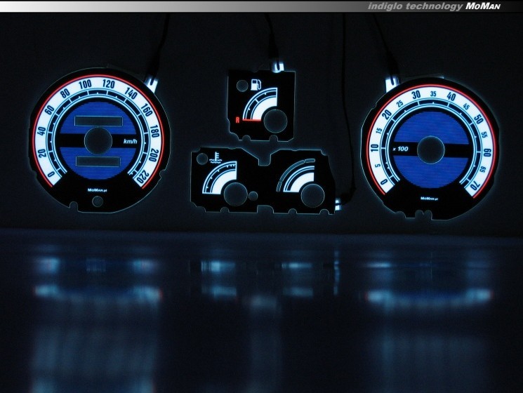 При установке шкал INDIGLO не требуеться демонтаж старых шкал, или установка дополнительных подсветок, что очень часто заканчивается повреждением приборной панели.