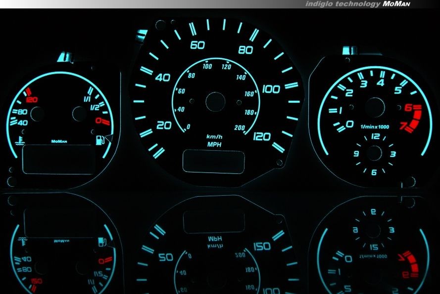При установке шкал INDIGLO не требуеться демонтаж старых шкал, или установка дополнительных подсветок, что очень часто заканчивается повреждением приборной панели.